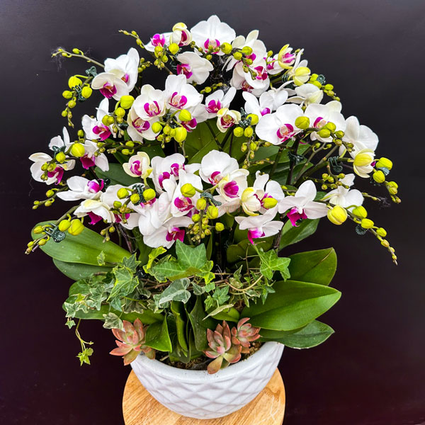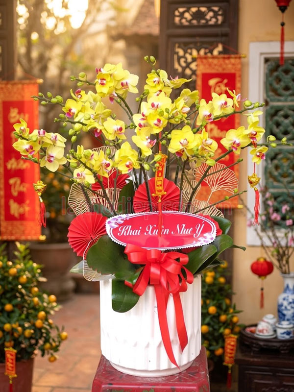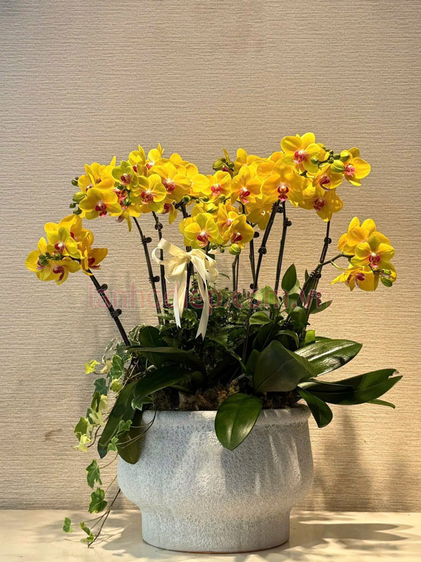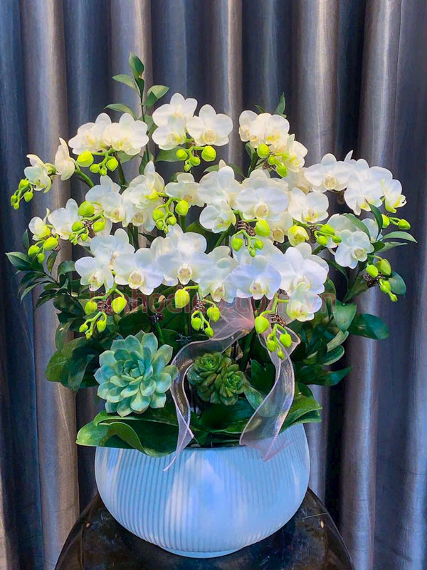 Lưu ý: Giá bán chậu lan hồ điệp mini 7 bầu trên chưa bao gồm 10% thuế VAT (xuất hóa đơn điện tử), free ship nội thành, miễn phí in thiệp banner theo yêu cầu.
