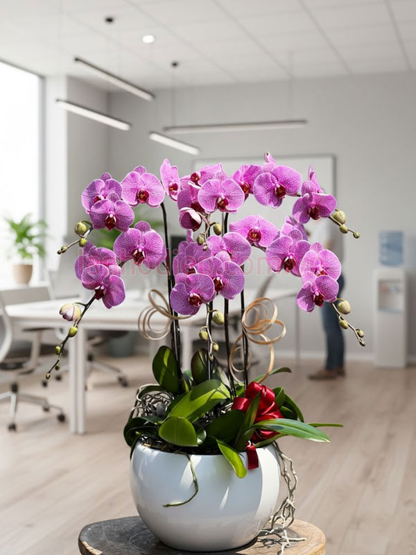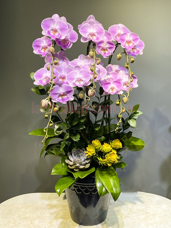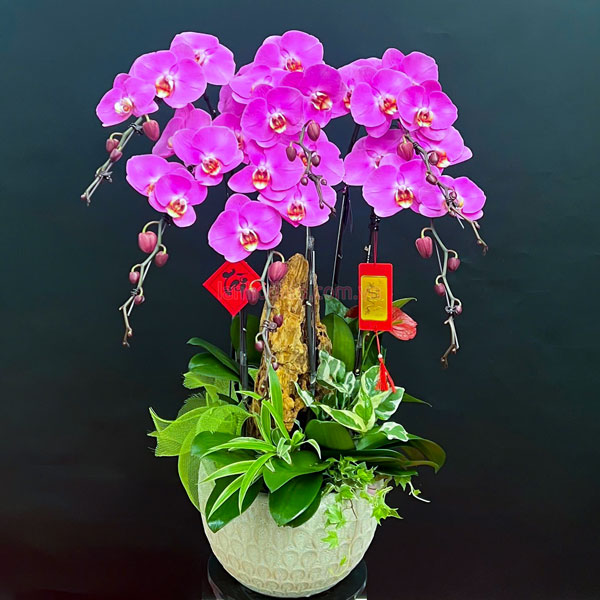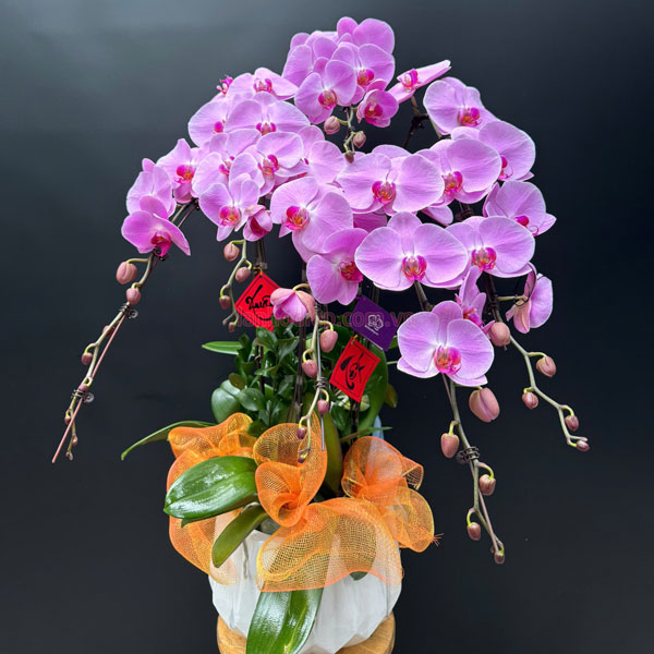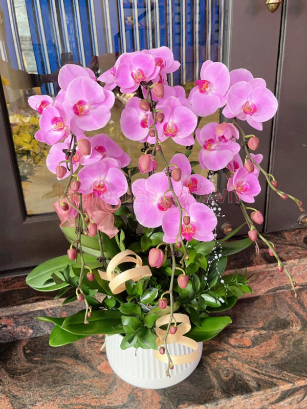 Chậu lan hồ điệp hồng 6 cành là dòng sản phẩm trưng bày cao cấp được nhiều người yêu thích nhờ vẻ đẹp nhẹ nhàng, thanh lịch nhưng vẫn toát lên sự sang trọng và quý phái. Với sắc hồng dịu dàng, chậu hoa lan không chỉ mang giá trị thẩm mỹ cao mà còn mang đến nhiều ý nghĩa phong thủy tốt lành. Chậu hoa thích hợp làm quà tặng hoặc trưng bày trong các dịp quan trọng…