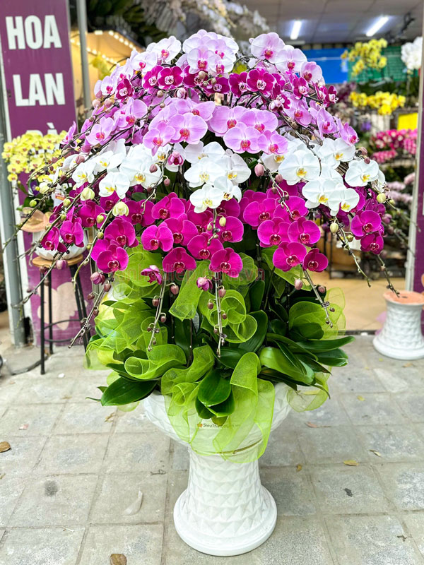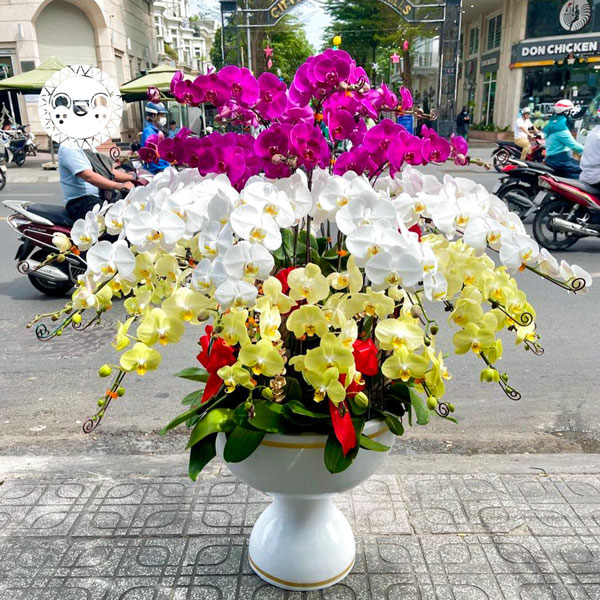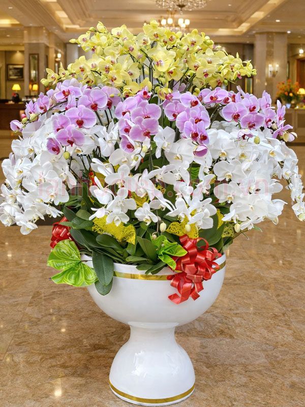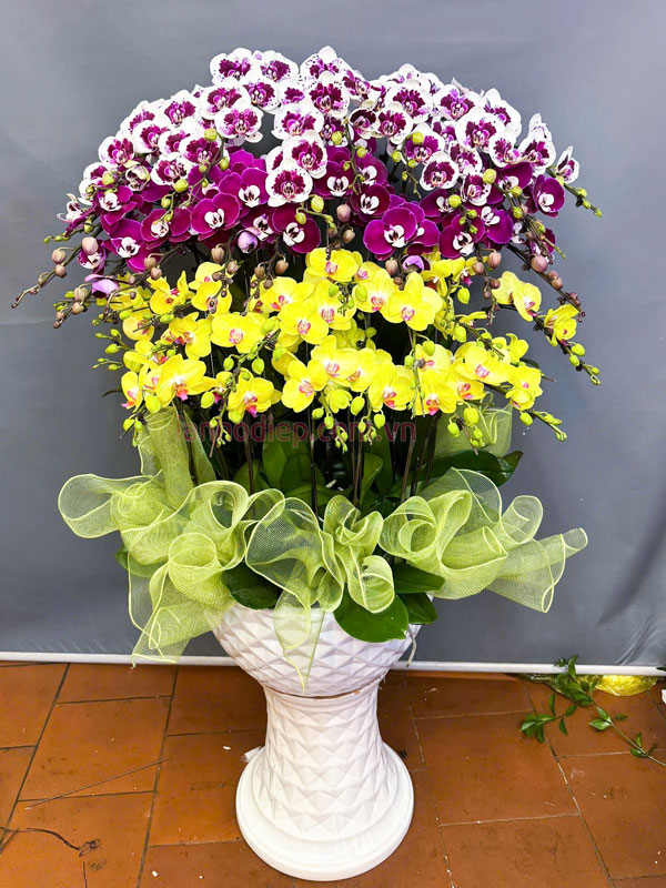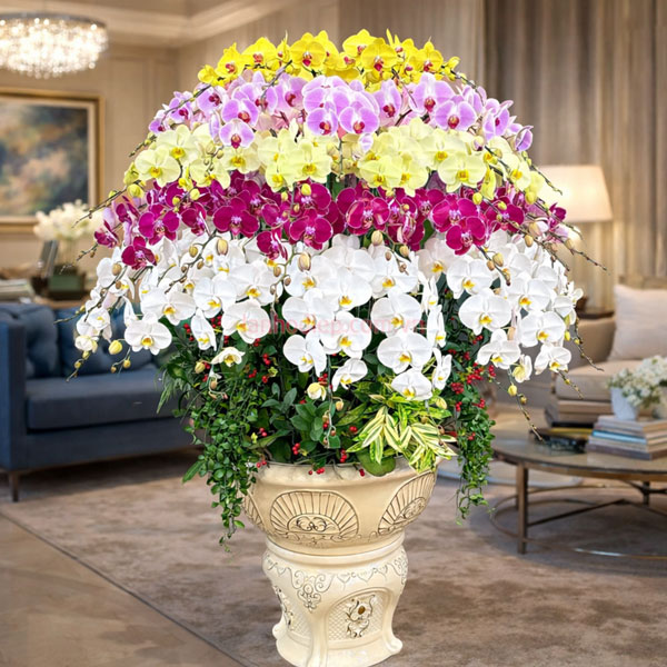 - Lưu ý: Chậu lan hồ điệp đa sắc 68 cành được các nghệ nhân thiết kế khéo léo, trồng hoàn toàn theo phương thức thủ công nên thực tế sẽ có sự chênh lệch so với hình mẫu đôi chút.